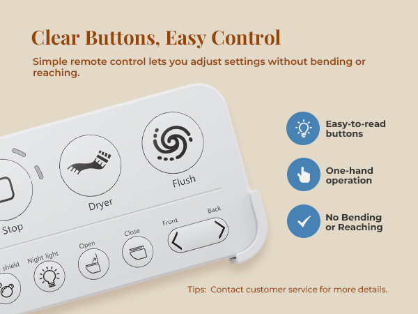 - Ultimate Comfort Bidet Toilet: Heated Seat with Adjustable Temperature and a powerful warm air dryer, designed to reduce toilet paper use by up to 90% while providing gentle post-surgery comfort and muscle tension relief.