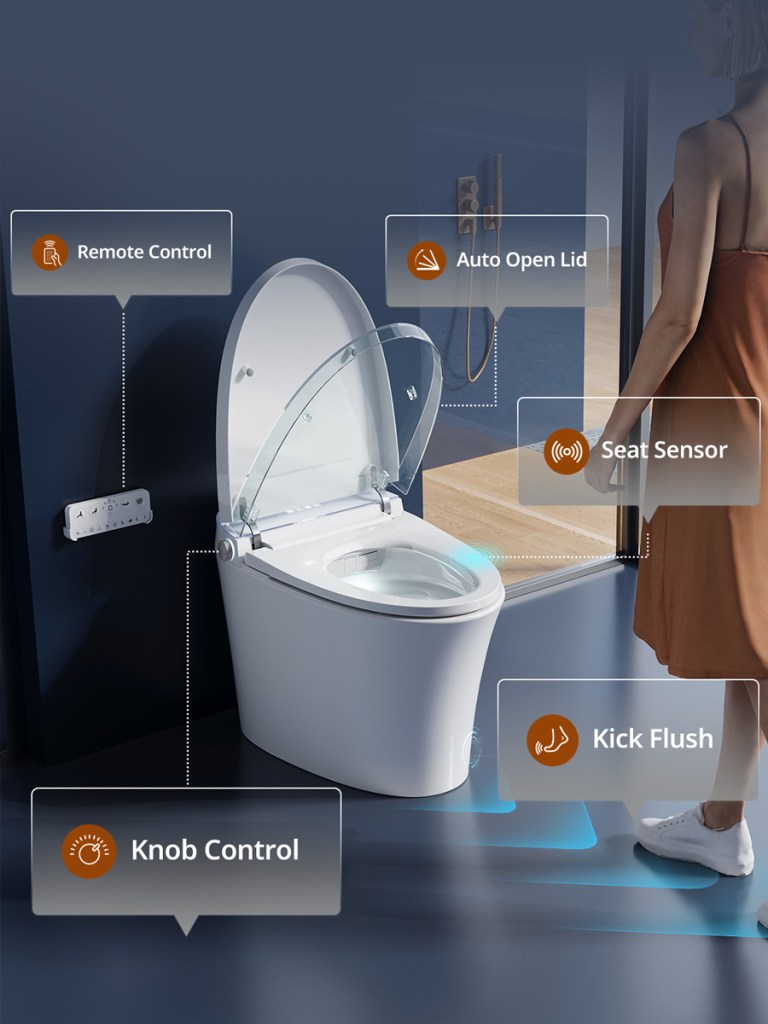 Smart toilet features a built-in water submersible pump, delivering strong, MAP 1000g-certified flushing performance that effortlessly clears waste with minimal water 1.28GPF—no clogs, no stains, and lower noise.